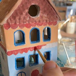 Hand build a pottery house candle holder with clay and decorate with tools & pottery paint 10-1:30pm